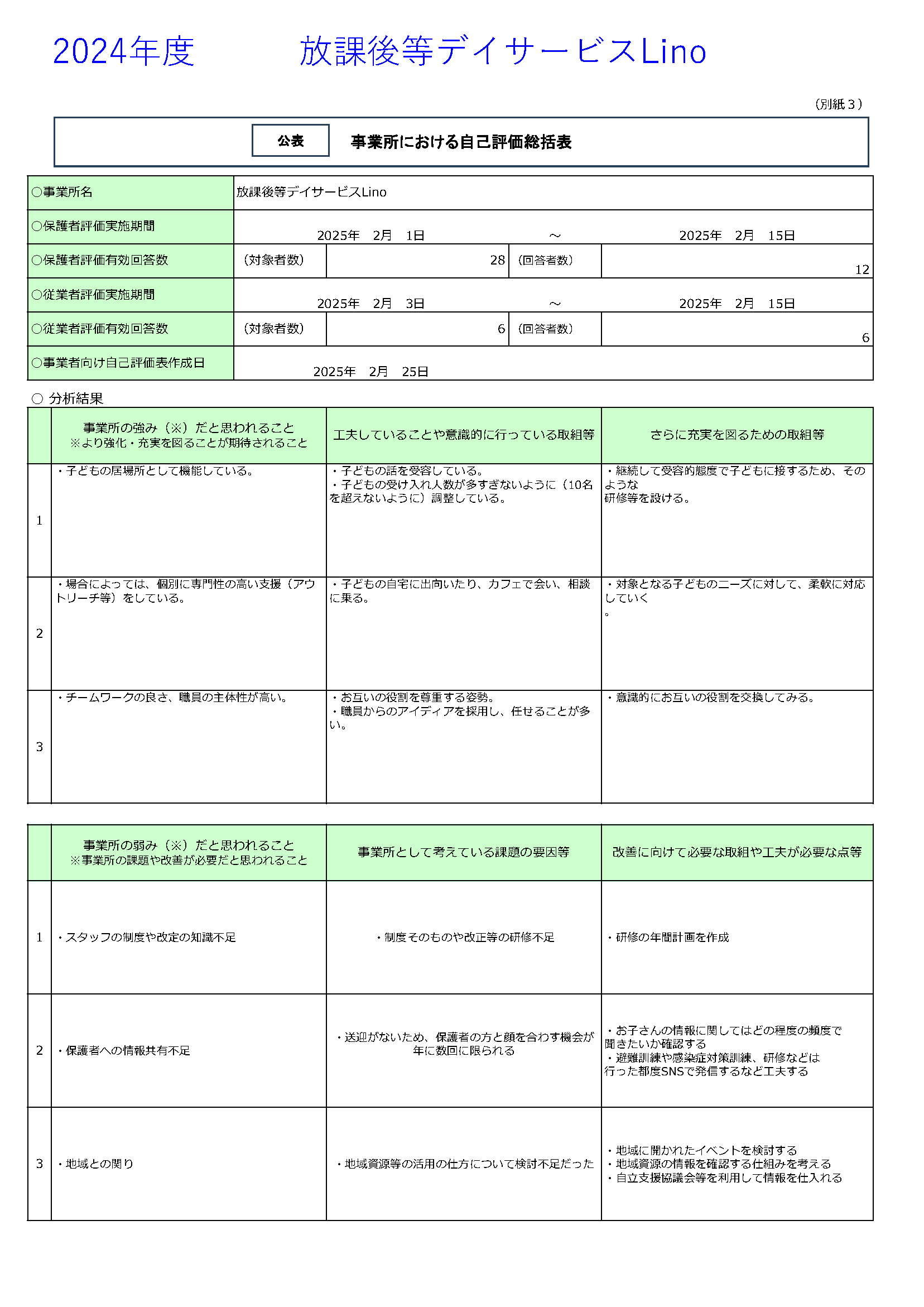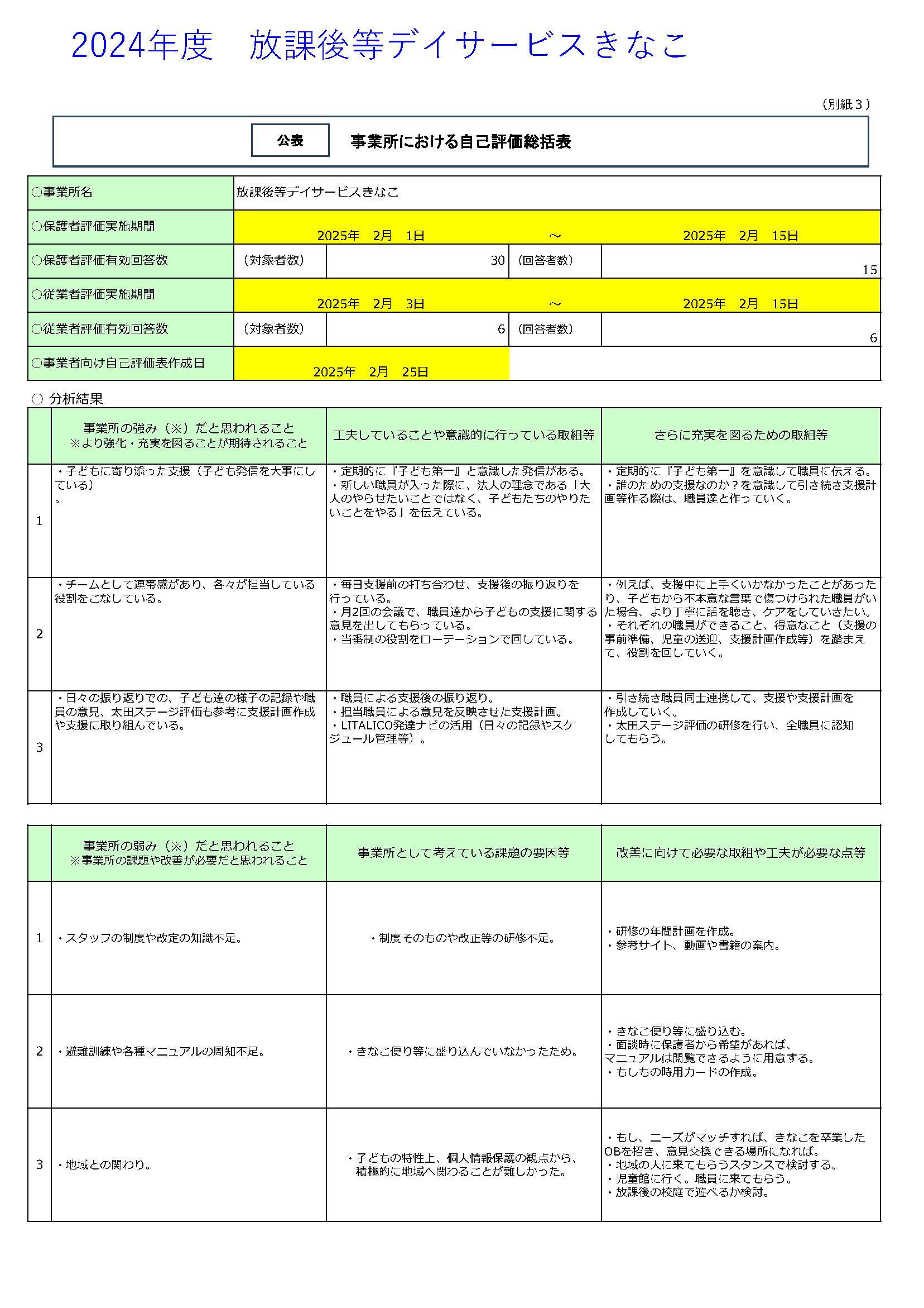 ▶︎きなこ(放デイ)保護者等からの事業所評価表